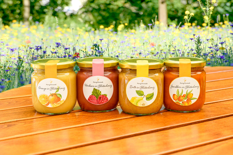 Willkommen in der Kollektion "Frucht im Blütenhonig", wo wir erlesene Blütenhonige mit dem intensiven Geschmack sonnengereifter Früchte verschmelzen lassen. Unsere Lieferanten gehören zu den besten und garantieren höchste Qualität in jedem Glas. Erleben Sie die harmonische Verbindung von natürlicher Honigsüße und fruchtiger Frische, die jeden Löffel zu einem besonderen Genuss macht. Entdecken Sie die Vielfalt unserer fruchtverfeinerten Honige und lassen Sie sich die köstliche Symbiose schmecken.