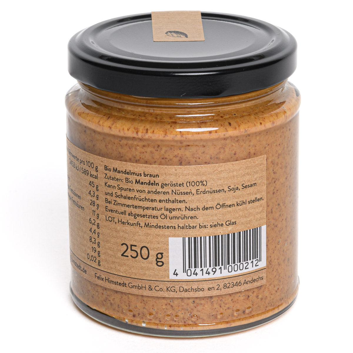Hinweis: Kann Spuren von anderen Schalenfrüchten erhalten. Ölabsatz an der Oberfläche ist natürlich. Vor Gebrauch gut umrühren.